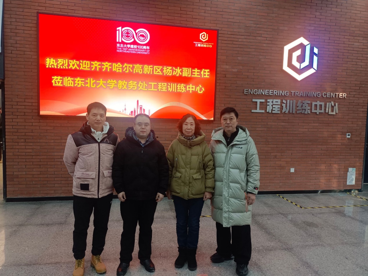 12月15日上午,齐齐哈尔高新区党工委委员、副主任杨冰到东北大学教务处工程训练中心参观调研,工程训练中心相关负责人陪同参观。