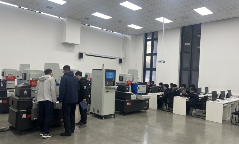 中心负责人对张福磊等领导的来访表示欢迎,并陪同参观了线切割、3D打印、激光切割、工业机器人、VR虚拟仿真等实训教学场地。