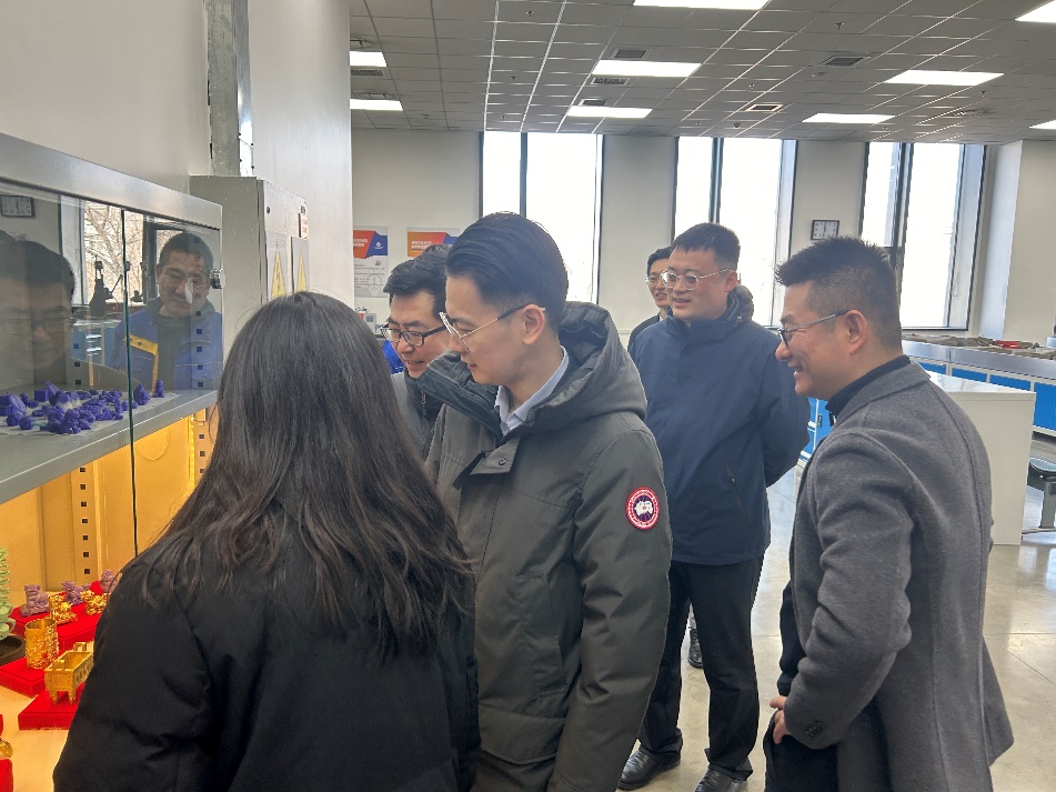 中心负责人首先向中伟集团领导介绍了中心的发展历程、建设整体情况及教学培养体系的特色,随后代表团依次参观了线切割、数车、加工中心、精密铸造等实训教学场地,并就精密铸造新型功能材料的加工工艺和发展方向与中心教师进行了深入交流。