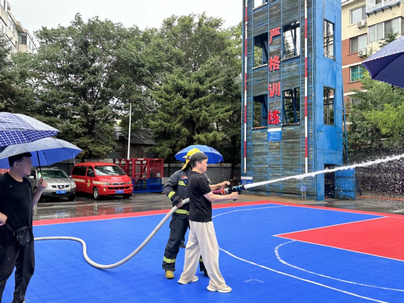 救援站详细介绍了队伍建设情况与消防救援核心职责。工程训练中心负责人介绍了中心的实践教学特色及安全管理体系。座谈会后,中心教师听取了消防知识讲座、近距离参观了各类功能先进的消防车辆和精良装备,学习了多种关键消防救援绳结技法,在专业指导下,还亲身体验了灭火防护服的穿戴、消防水枪的操作,喷涌而出的水龙模拟实战场景,让安全知识从书本理论跃升为真切感知。